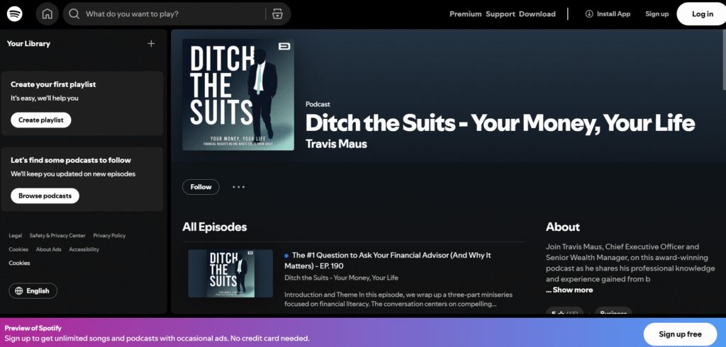 - Spotify – One of the easiest places to search and discover new shows. Just type “money podcasts” or search for specific titles
