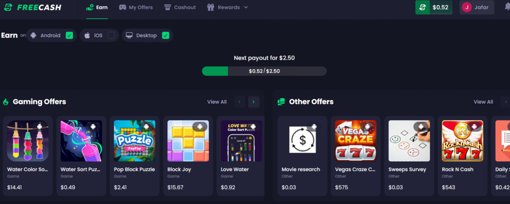 Freecash is the speed demon of the video-watching world. With a $0.50 minimum payout, you can literally cash out the same day you start.