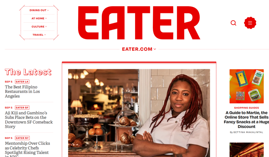 Eater represents the gold standard in food journalism. They cover restaurant culture, chef profiles, and dining trends across major cities.