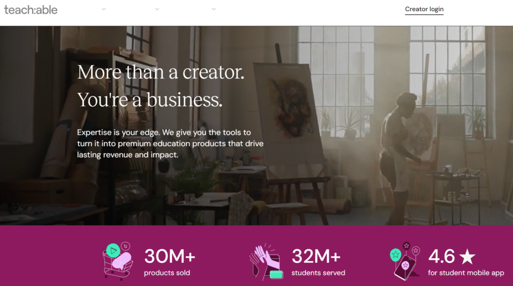 Let’s switch gears. If you’ve got knowledge or a skill worth sharing, Teachable can turn that into long-term income.